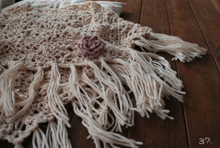 こういうモチーフ編みの三角ストールが欲しく始めたかぎ針編み。