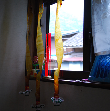 昔懐かしい、アレ、ハエ取り紙であります。それも三枚体制。