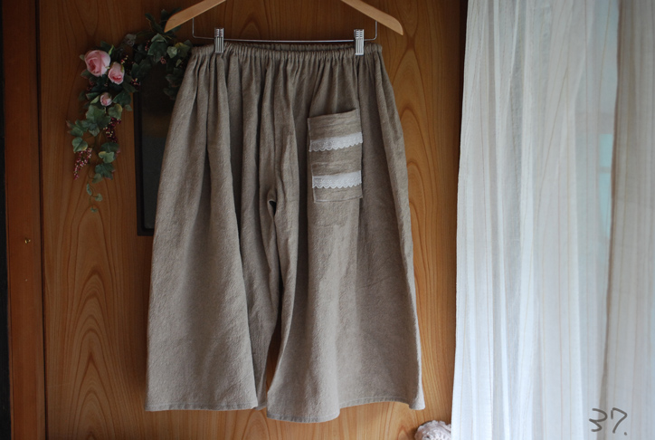 ゆったりパンツを作りました37です。これも型紙なしで仕上げました(きりっ)。